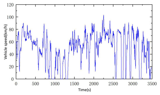 In order to obtain real driving data, we adopt the naturalistic driving data collection method, which allows the driver to choose the route freely and fully captures the random traffic conditions (e.g., congestion, rapid acceleration, etc.). A total of vehicle speed, SOC, gear, voltage, current, and other parameters are recorded during the data acquisition cycle, and some examples of raw data are shown in Table 2.