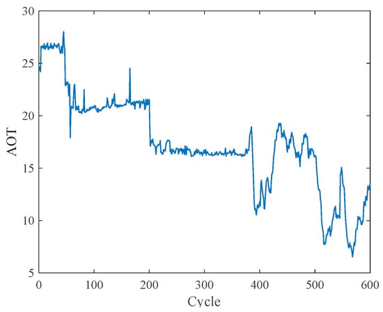 where Ti is the temperature value of the i time sampling in the cycle, and n is the total number of temperature data sampling in the cycle. Figure 4 illustrates the variation in AOT in a single battery as the number of cycles increases.