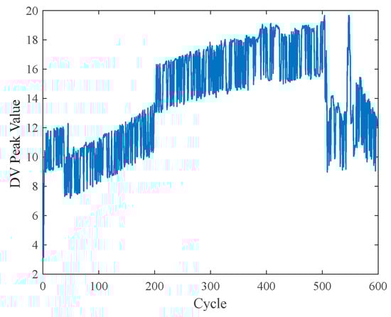 where V represents the battery voltage, and Q represents the battery capacity. Figure 7 demonstrates the corresponding changes in DV peak values.