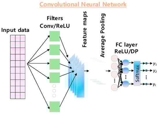 A CNN [] is a deep learning model specifically designed for processing grid-like data. It utilizes structures such as convolutional layers and pooling layers to capture local features, allowing the model to comprehend complex patterns through a layer-by-layer abstraction. This architecture makes CNNs particularly effective for tasks such as image classification, object detection, and semantic segmentation, and it also extends to fields like natural language processing and time series analysis. Figure 8 illustrates the structural diagram of a CNN.
