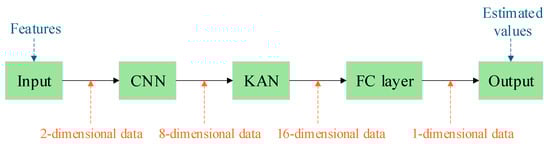 The KAN model [,] aims to address complex multivariate continuous functions by utilizing combinations of univariate functions. Unlike traditional multilayer perceptrons, the KAN model replaces the fixed activation function in the network with a learnable univariate function. This approach offers distinct advantages in terms of parameter efficiency, interpretability, and nonlinear fitting capability. Figure 9 below illustrates the structural diagram of the KAN model.