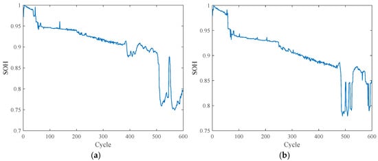 The SOH changes of four batteries are illustrated in Figure 12. Notably, the atypical SOH rebound phenomenon observed in Batteries 1 and 2 can be attributed to the significant influence of AOT.