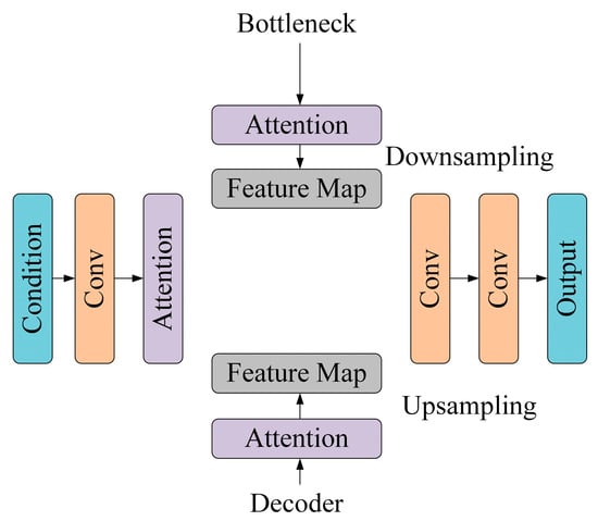To enhance the diffusion model’s ability to refine informative patterns from limited fault datasets, attention mechanisms were integrated into the network architecture. This design enables the model to focus selectively on salient temporal and structural features, thereby improving the quality of conditional generation. Such refinement is particularly advantageous in low-data regimes, where maximizing the utility of the available information is essential. The integration retains the original diffusion framework, while introducing minimal additional complexity, ensuring scalability and compatibility with downstream diagnostic tasks.