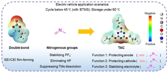 - Li, Y.; Qu, Q.; Lv, L.; Shao, J.; Zheng, H. A multifunctional additive capable of electrolyte stabilization and structure/interphases regulation of high-energy Li-ion batteries. Adv. Funct. Mater. 2024, 34, 2314100. [Google Scholar] [CrossRef]