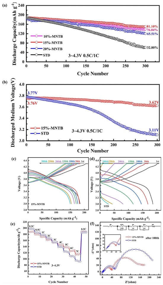 - Zheng, J.; Qiu, Y.; Liao, S.; Yue, Z.; Fang, S.; Zhou, N.; Li, Y.; Jiang, Y. A novel 4-fluorophenyl isocyanate additive constructing solid cathodes-electrolyte interface for high-performance lithium-ion batteries. Small 2024, 20, 2405853. [Google Scholar] [CrossRef]