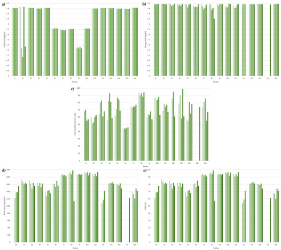 This research aims to evaluate the electrical and mechanical parameters of 18650 lithium-ion cells within aged battery modules sourced from electric micromobility Light Electric Vehicles (LEVs). Through charge–discharge cycling tests, the SOH and IR of the cells under evaluation are determined. Subsequently, using an impact platform, a mechanical shock scenario is recreated in accordance with the UL2271:2018 standard [41] to simulate impacts the vehicle may receive, which could affect battery performance. To quantify the mechanical damage resulting from this phenomenon, the use of strain gauges affixed to the housing of the module’s internal cells is proposed. Concurrently, the module’s electrical parameters are monitored with a lithium-ion battery testing system to detect transient spikes. Such events could precipitate an internal short circuit and/or a rise in cell temperature, potentially triggering a cascading failure in adjacent cells that could lead to a fire or an explosion in the electric vehicle’s battery module.