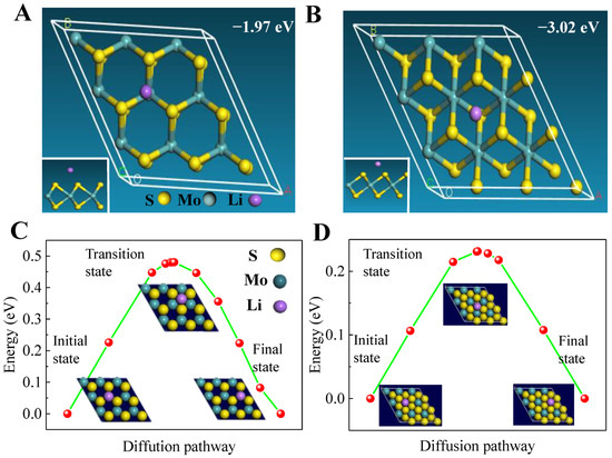 - Zhao, T.; Shu, H.; Shen, Z.; Hu, H.; Wang, J.; Chen, X. Electrochemical Lithiation Mechanism of Two-Dimensional Transition-Metal Dichalcogenide Anode Materials: Intercalation versus Conversion Reactions. J. Phys. Chem. C 2019, 123, 2139–2146. [Google Scholar] [CrossRef]