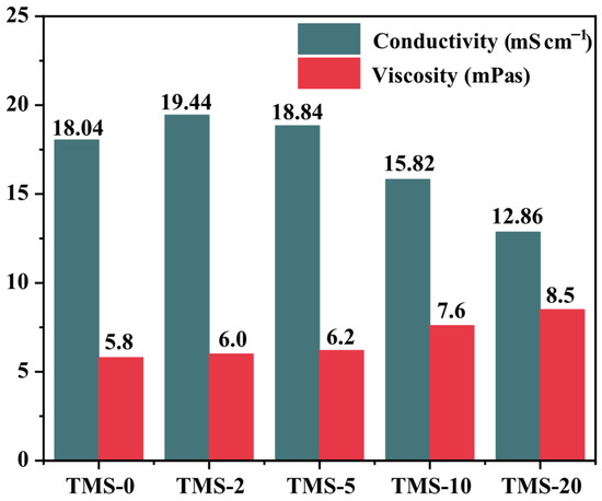 Conductivity of TMS electrolytes with different compositions and electrolyte viscosity with different TMS contents.