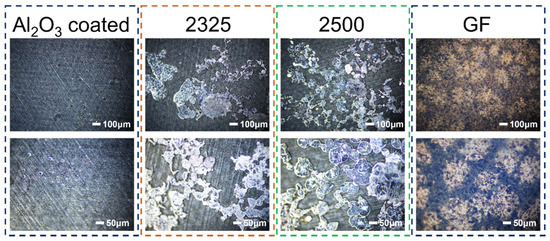 Optical microscopy analysis was further conducted on the AlC current collectors with stripping to evaluate the Na stripping reversibility and uniformity (Figure 7). Strikingly, the current collector cycled with the Al2O3-coated separator exhibits minimal residual Na, appearing predominantly clean and uniform with only sparse, isolated traces of Na, indicative of highly efficient and near-complete stripping. In stark contrast, current collectors paired with 2500, 2325, and especially GF separators display extensive, heterogeneous patches of residual Na metal, signifying severely incomplete stripping and pronounced inhomogeneity. Alarmingly, the GF separator itself also exhibits copious macroscopic Na deposits adhering to its surface, directly evidencing catastrophic interfacial instability. This substantial Na residue represents irreversible “dead Na,” permanently lost to the active inventory, accelerating capacity fade and contributing directly to the low CE and premature failure observed in cells using these separators. The exceptionally clean stripping enabled by the Al2O3-coated separator provides direct visual confirmation of its superior interfacial compatibility and plating/stripping reversibility, underpinning its outstanding electrochemical performance.