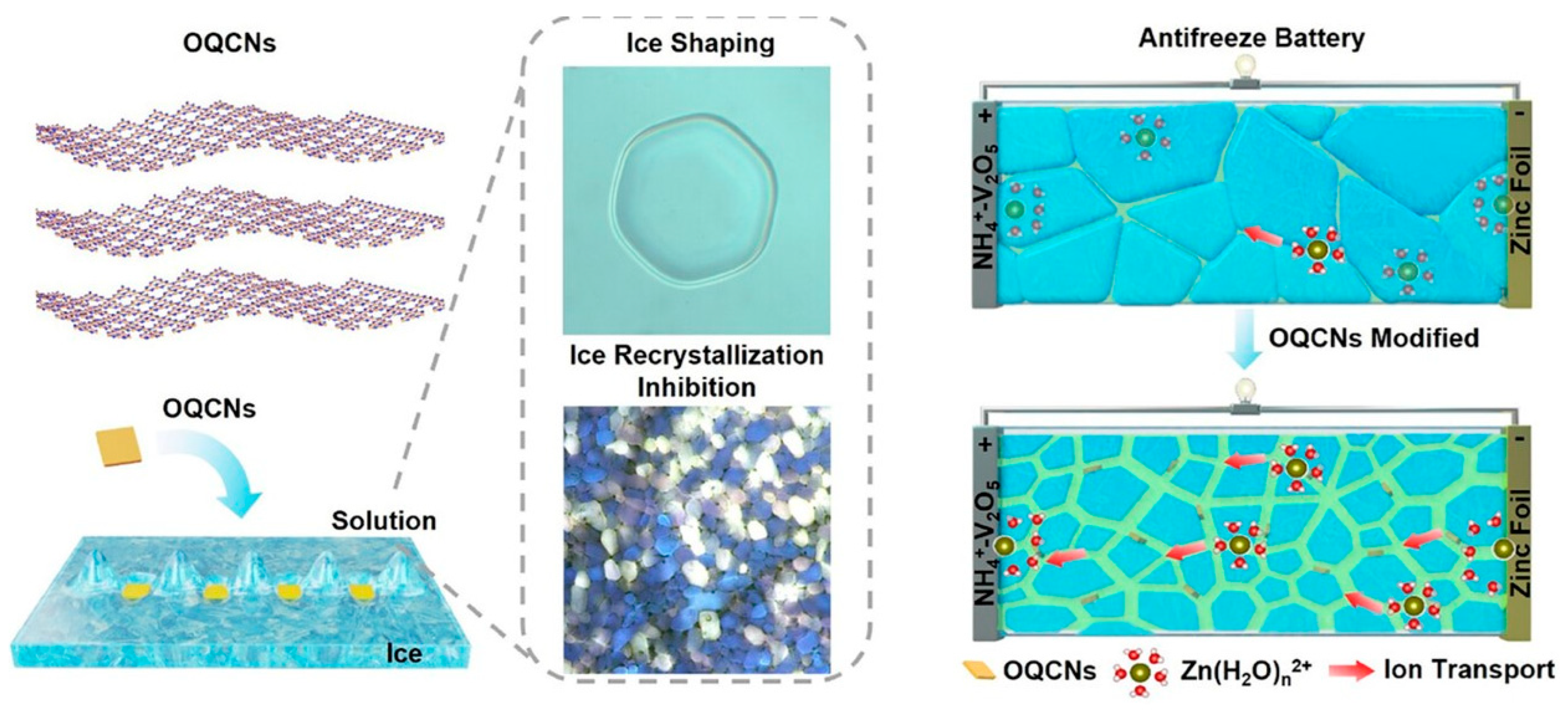 - Zhu, Z.; Ma, H.; Du, H.; Zhang, L.; Wu, J.; Gao, C.; Li, W.; Chen, X.; Su, Y.; Wang, D.; et al. Antifreeze Protein Mimics Realizing Stable Low-Temperature-Resistant Aqueous Zn-Ion Batteries with High Water Content. Angew. Chem. Int. Ed. 2025, 64, e202505325. [Google Scholar] [CrossRef]