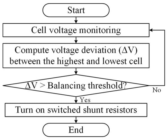 In passive equalization schemes, fixed shunt circuits are limited by their continuous energy dissipation and lack of control flexibility, making real-time operation infeasible. Consequently, switched shunt structures with controllable switches are more commonly used in practice. The control logic for such systems is illustrated in Figure 4 [22].
