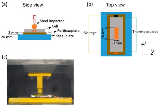 - Chen, Y.; Santhanagopalan, S.; Babu, V.; Ding, Y. Dynamic mechanical behavior of lithium-ion pouch cells subjected to high-velocity impact. Compos. Struct. 2019, 218, 50–59. [Google Scholar] [CrossRef]