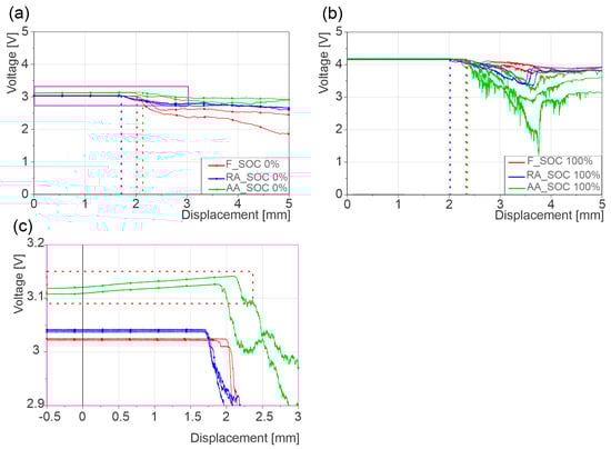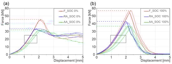 | 0% SOC | 100% SOC | 0% SOC | 100% SOC | Peak Failure Force (kN) | Failure Deformation (mm) | |||