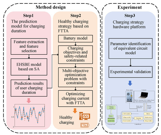 There are two major challenges in healthy charging strategies. First, users’ charging habits vary significantly, making charging duration hard to predict. Long-term charging typically lasts several hours to meet substantial energy needs. During these charging processes, the current required is typically lower and more stable, ensuring a steady and efficient energy transfer. In contrast, short-term charging involves brief charging sessions. In this case, the charging demand is usually within 1 h, requiring just a small amount of electricity to sustain limited driving activities [24]. The second issue is the frequent occurrence of overcharging and overdischarging during battery use, making health management difficult. Overcharging triggers excessive internal reactions, increasing pressure and reducing lifespan, while overdischarging depletes active materials, degrading capacity. Improper charging currents further exacerbate these issues: high currents generate excessive heat, accelerating aging, while low currents prolong charging duration and compromise user experience.