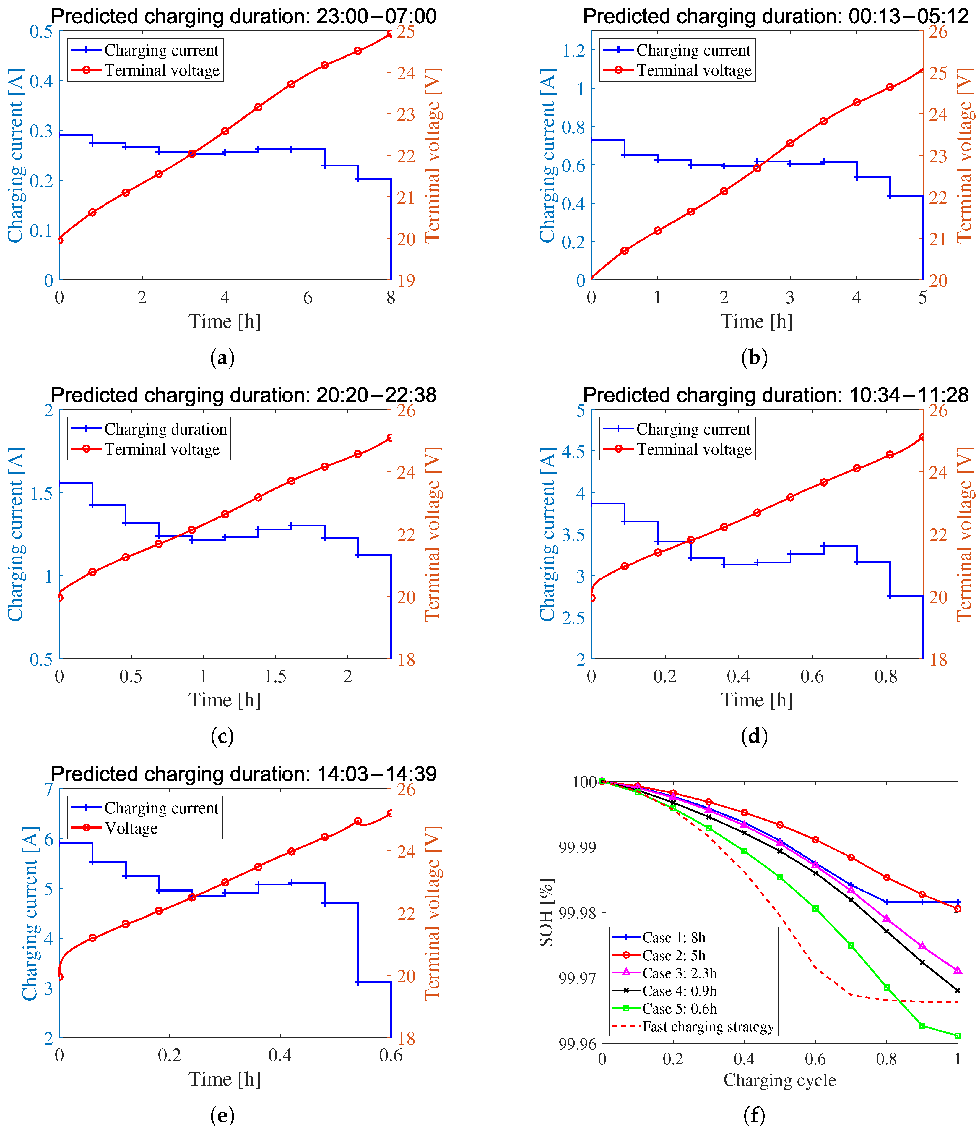 - Han, S. Optimal Charging Current Protocol with Multi-Stage Constant Current Using Dandelion Optimizer for Time-Domain Modeled Lithium-Ion Batteries. Appl. Sci. 2024, 14, 11320. [Google Scholar] [CrossRef]
