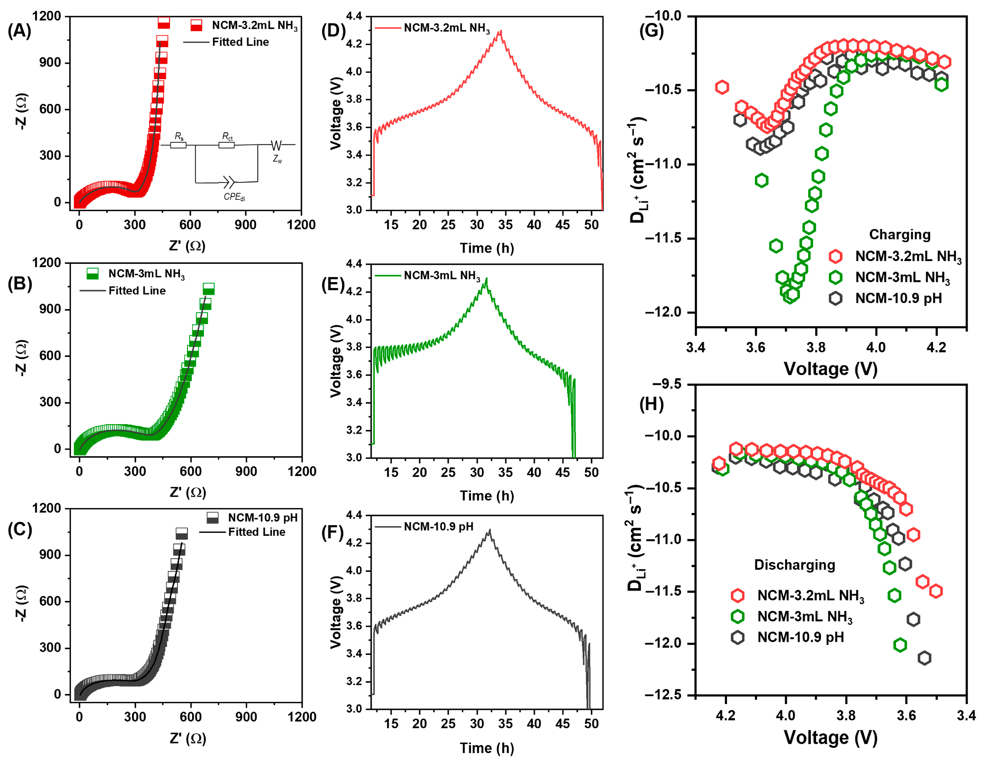 - Sun, W.; Lin, G.; Zhang, X.; Jin, H.; Zhu, M.; Li, Y. The Modification of Ncm Cathode Material Prepared by Hydrothermal Method Under Pulsed High Magnetic Field. Research Square, 2024; Preprint (v1). [Google Scholar] [CrossRef]