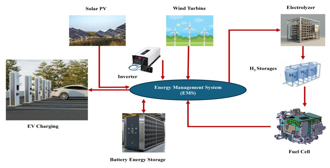 - Fuel Cell: utilizes stored hydrogen to provide clean energy during peak demand, enhancing system reliability beyond typical renewable generation.