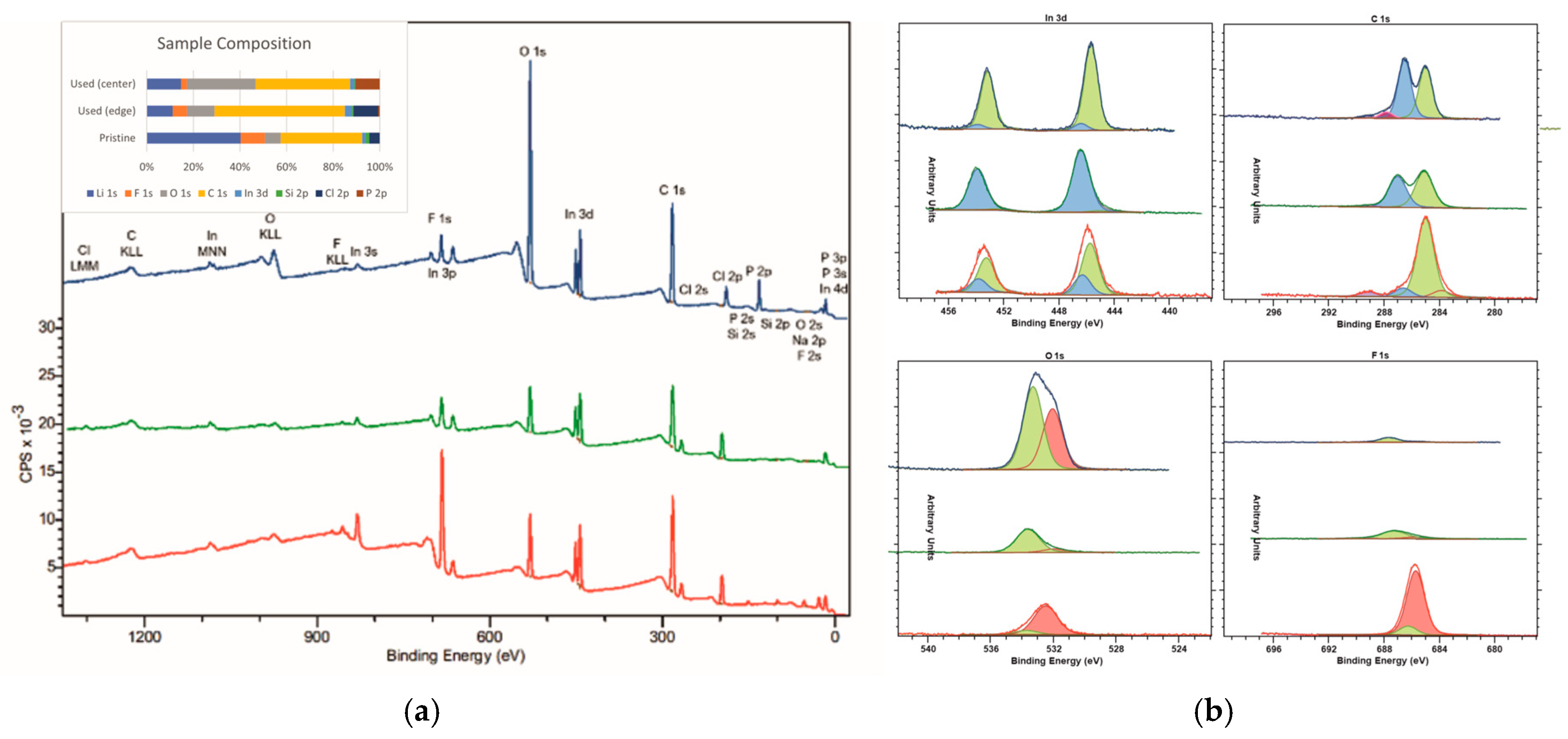- Martin, L.; Martinez, H.; Poinot, D.; Pecquenard, B.; Cras, F. Comprehensive X-ray photoelectron spectroscopy study of the conversion reaction mechanism of CuO in lithiated thin film electrodes. J. Phys. Chem. C 2013, 117, 4421–4430. [Google Scholar] [CrossRef]