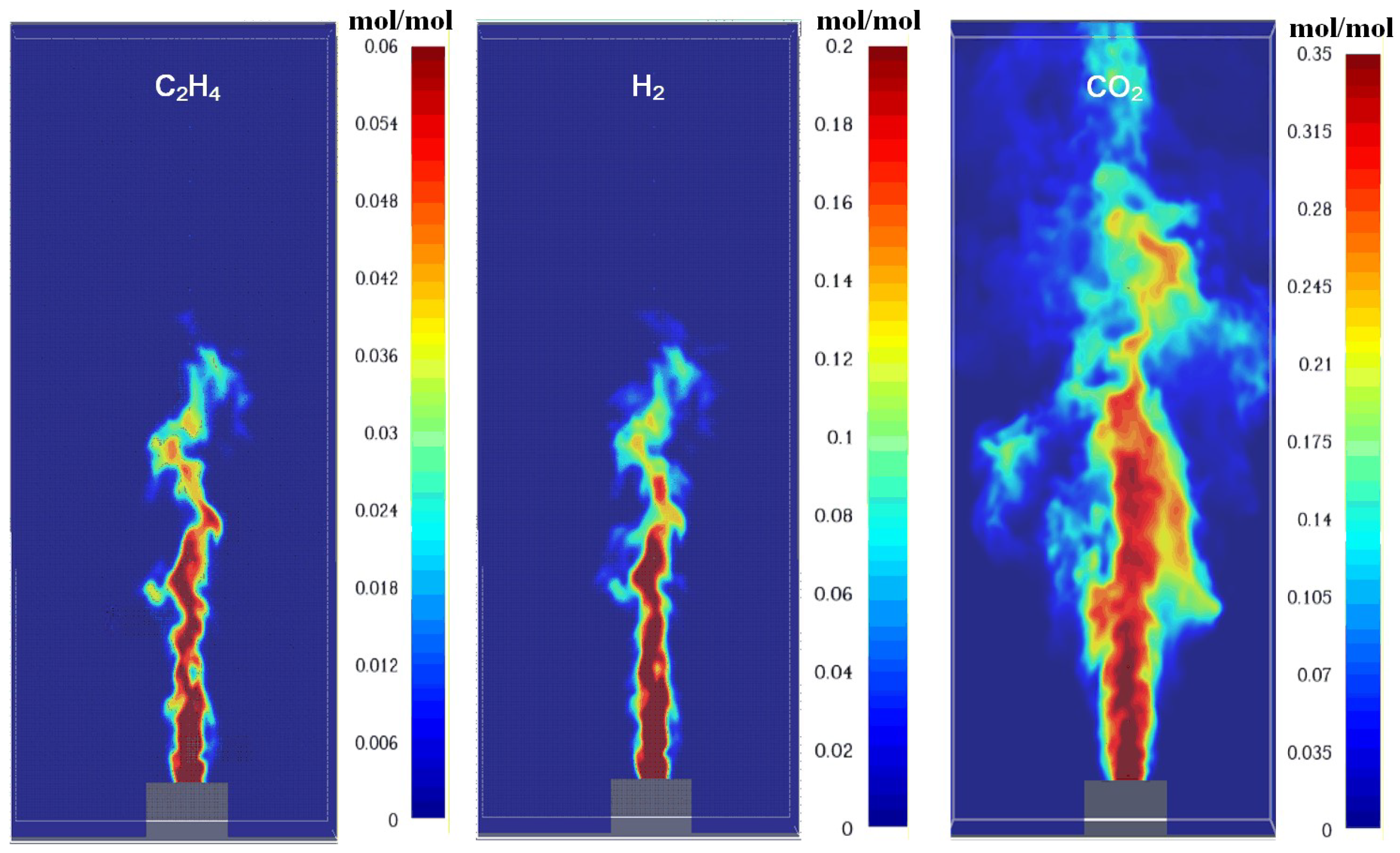 3.2. The Species Distribution in Flame
