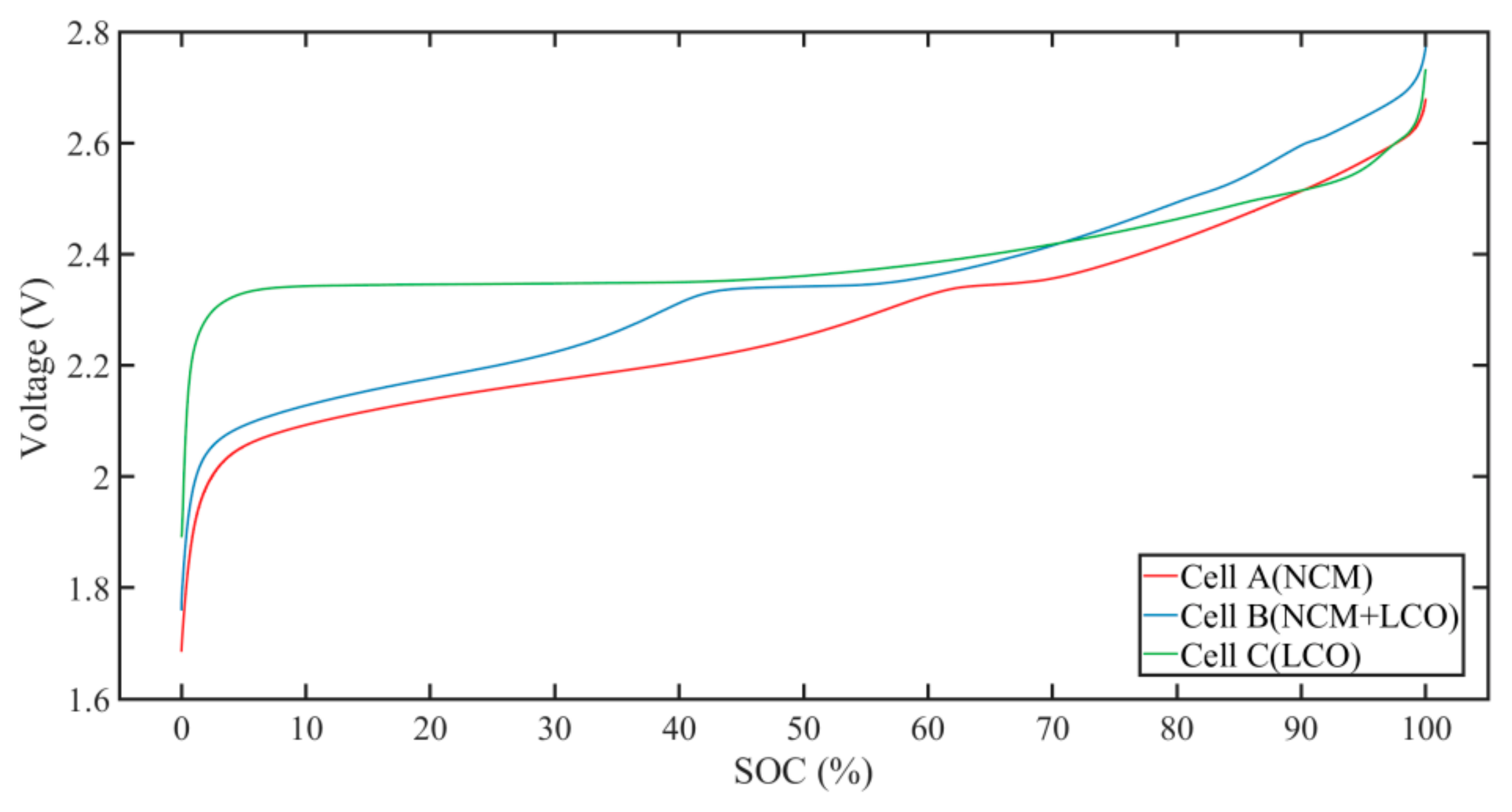 - Chen, H.; Yang, S.; Zhang, W.; Zhang, C.; Sun, B.; Chen, D. An aging-aware modified open-circuit potential electrode model for degradation modes diagnosis of lithium titanate oxide batteries. J. Power Sources 2024, 614, 234921. [Google Scholar] [CrossRef]