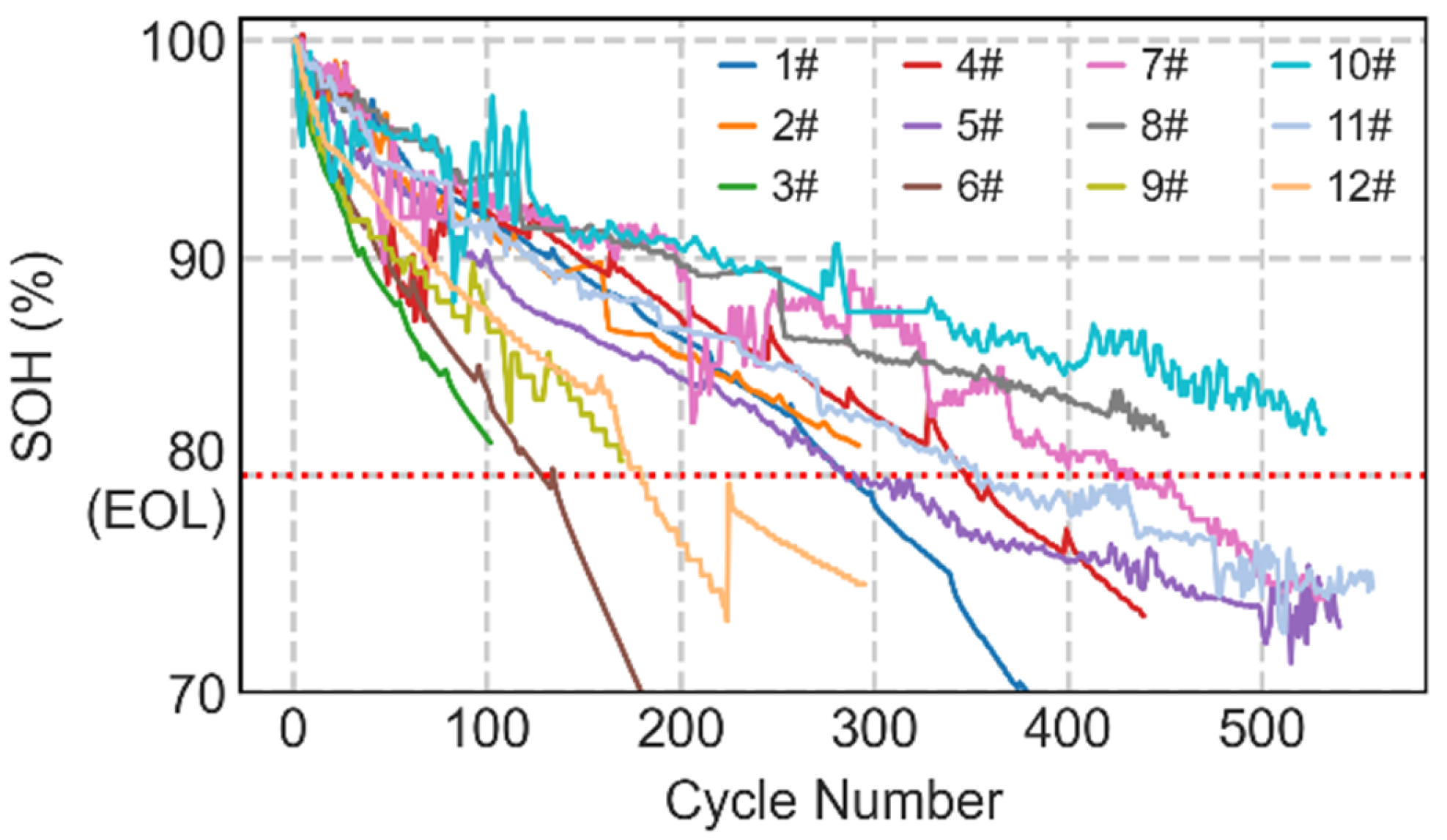 - Cheng, X.; Gao, X.; Ma, F.; Wang, Y. State of health estimation of lithium-ion batteries with feature interpretability based on partial charge curves. J. Electrochem. Soc. 2025, 172, 030509. [Google Scholar] [CrossRef]
