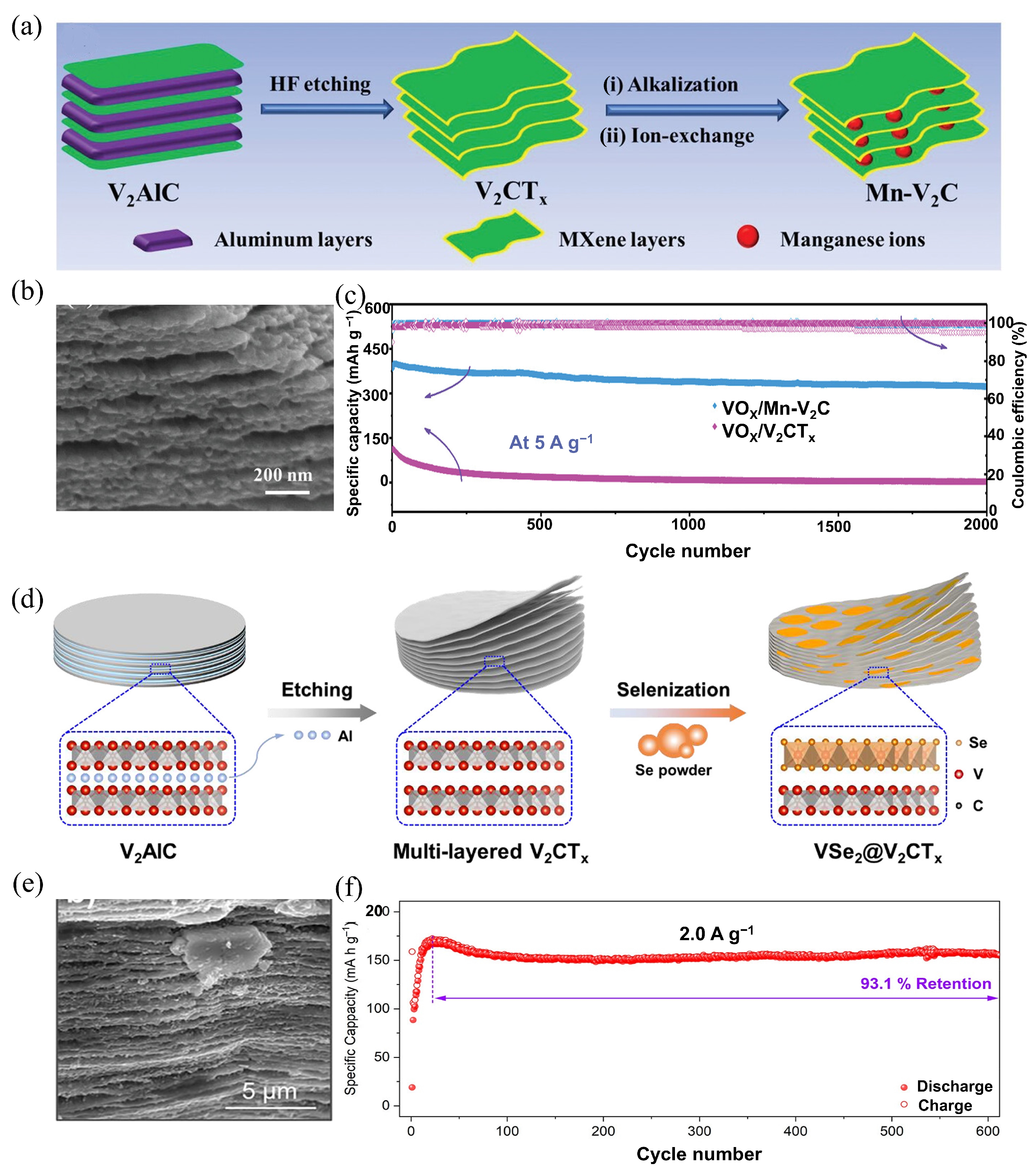 - Sha, D.; Lu, C.; He, W.; Ding, J.; Zhang, H.; Bao, Z.; Cao, X.; Fan, J.; Dou, Y.; Pan, L.; et al. Surface Selenization Strategy for V2CTx MXene toward Superior Zn-Ion Storage. ACS Nano 2022, 16, 2711–2720. [Google Scholar] [CrossRef]