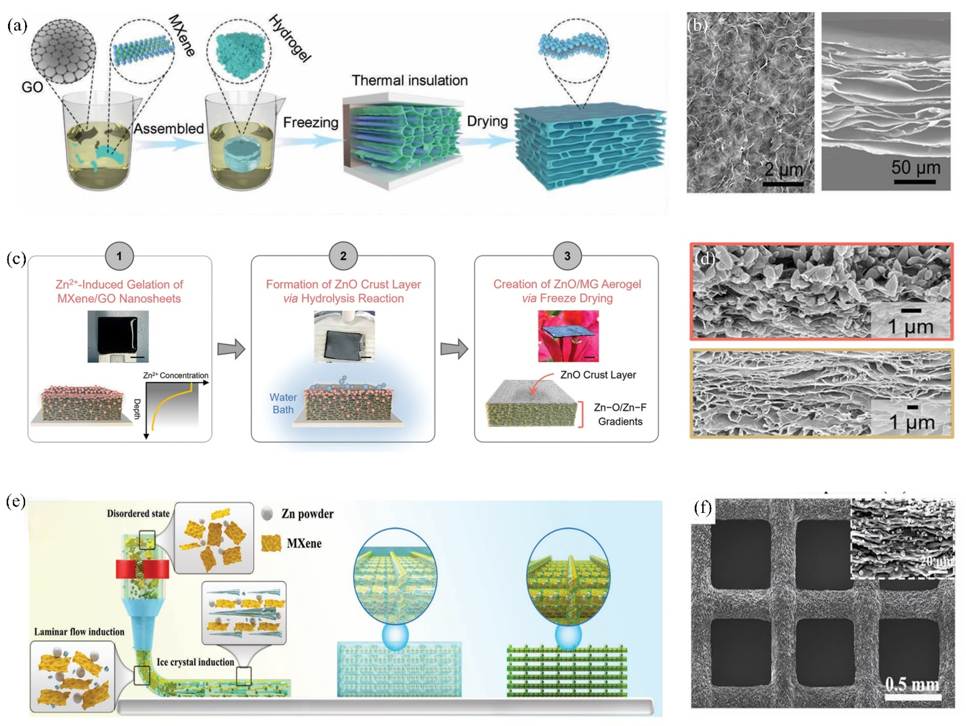 - Li, Y.; Pang, Z.; Ghani, A.; Little, J.M.; Wang, L.; Yang, H.; Zhao, Y.; Chen, P.Y. Gradient Structural and Compositional Design of Conductive MXene Aerogels for Stable Zn Metal Anodes. Adv. Energy Mater. 2023, 13, 2301557. [Google Scholar] [CrossRef]