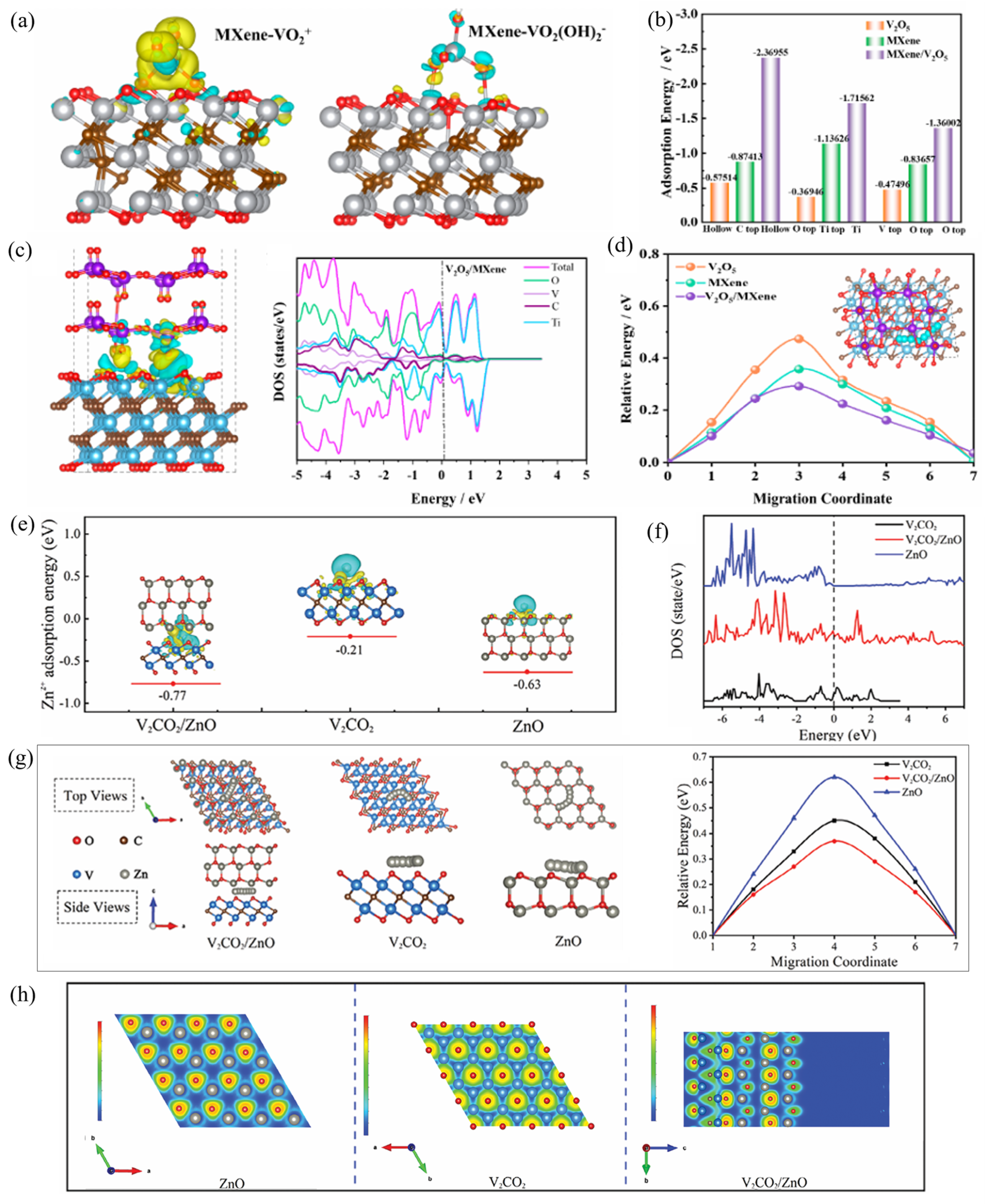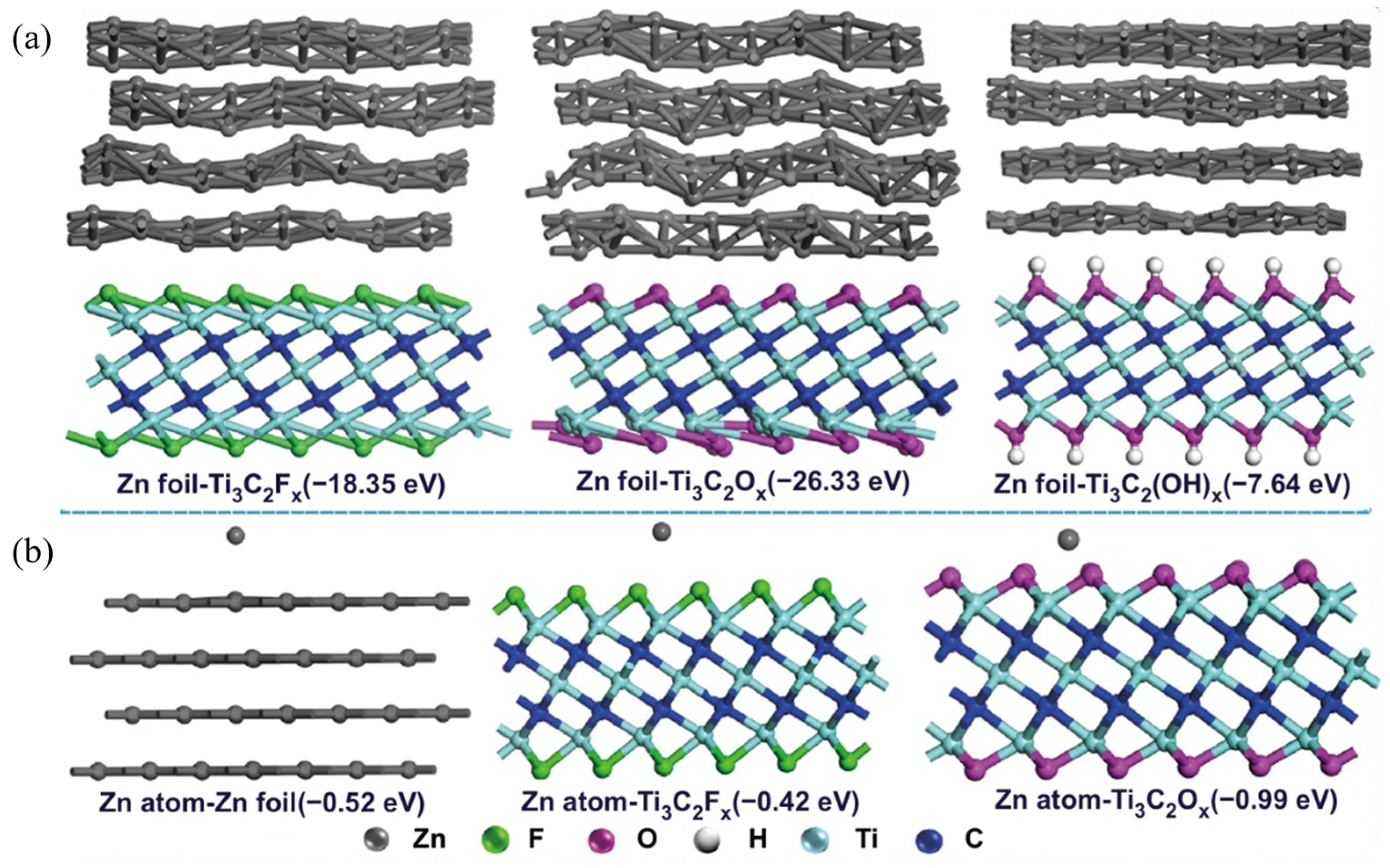 - Zhang, L.; Shi, J.; Niu, K.; Jia, P.; Gao, Y.; Gao, G. First-Principles Studies on High-Entropy Ti0.75V0.75Cr0.75Mo0.75C2 MXene Nanosheets as Anode Materials in Zinc-Ion Batteries. ACS Appl. Nano Mater. 2023, 6, 20812–20822. [Google Scholar] [CrossRef]