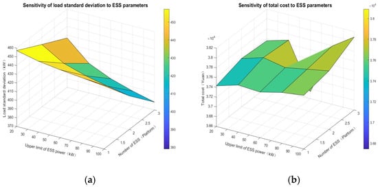 On the whole, the capacity and location of the ESS should not be optimized in a single dimension; instead, it is necessary to integrate the goals of meeting voltage stability requirements, controlling main grid power purchase costs, and managing ESS investment costs, while making trade-offs between core cost components. For instance, pursuing the minimization of total cost entails accepting a certain level of voltage deviation and, thus, higher voltage deviation cost, whereas emphasizing voltage quality improvement requires bearing higher main grid power purchase costs or ESS investment costs.
