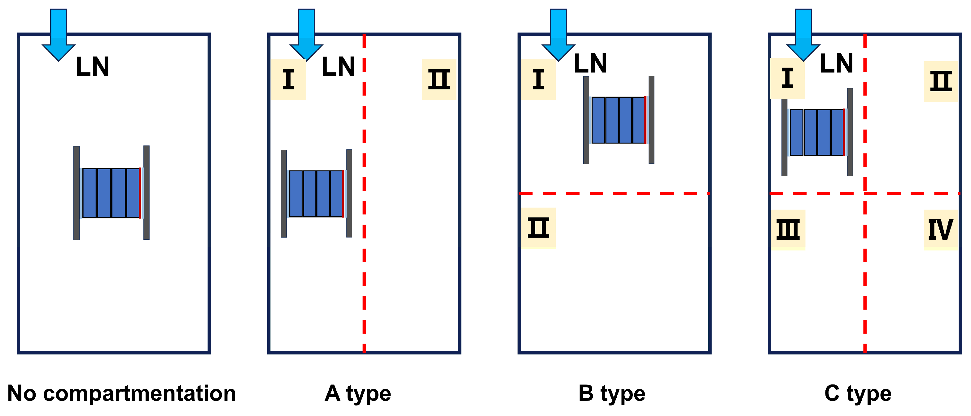 Previous studies on fire suppression agents have mainly focused on conventional agents, all of which exhibit certain limitations when dealing with LIB fires. Although extensive research has been conducted on liquid nitrogen fire extinguishing agents. These studies have confirmed the feasibility of liquid nitrogen in mitigating battery thermal runaway. However, liquid nitrogen is highly prone to vaporization at room temperature, and few studies have focused on how to maximize the cooling efficiency of liquid nitrogen. LN is stored at a very low temperature (−196 °C) and vaporizes rapidly after being released into the ambient air, improving its effective utilization on the basis of existing studies has become a new research focus. In this work, by establishing fire compartments, the effective action area of LN is reduced, its cooling capacity per unit volume is increased, and thus the cooling effectiveness of LN is improved to varying degrees. This study proposes a novel synergistic strategy that employs physical compartmentalization to overcome the rapid vaporization of LN.