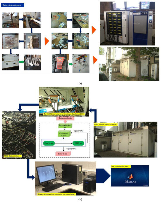Battery test setup procedure: (a) equipment, and (b) the risk analysis procedure, adapted from [30].