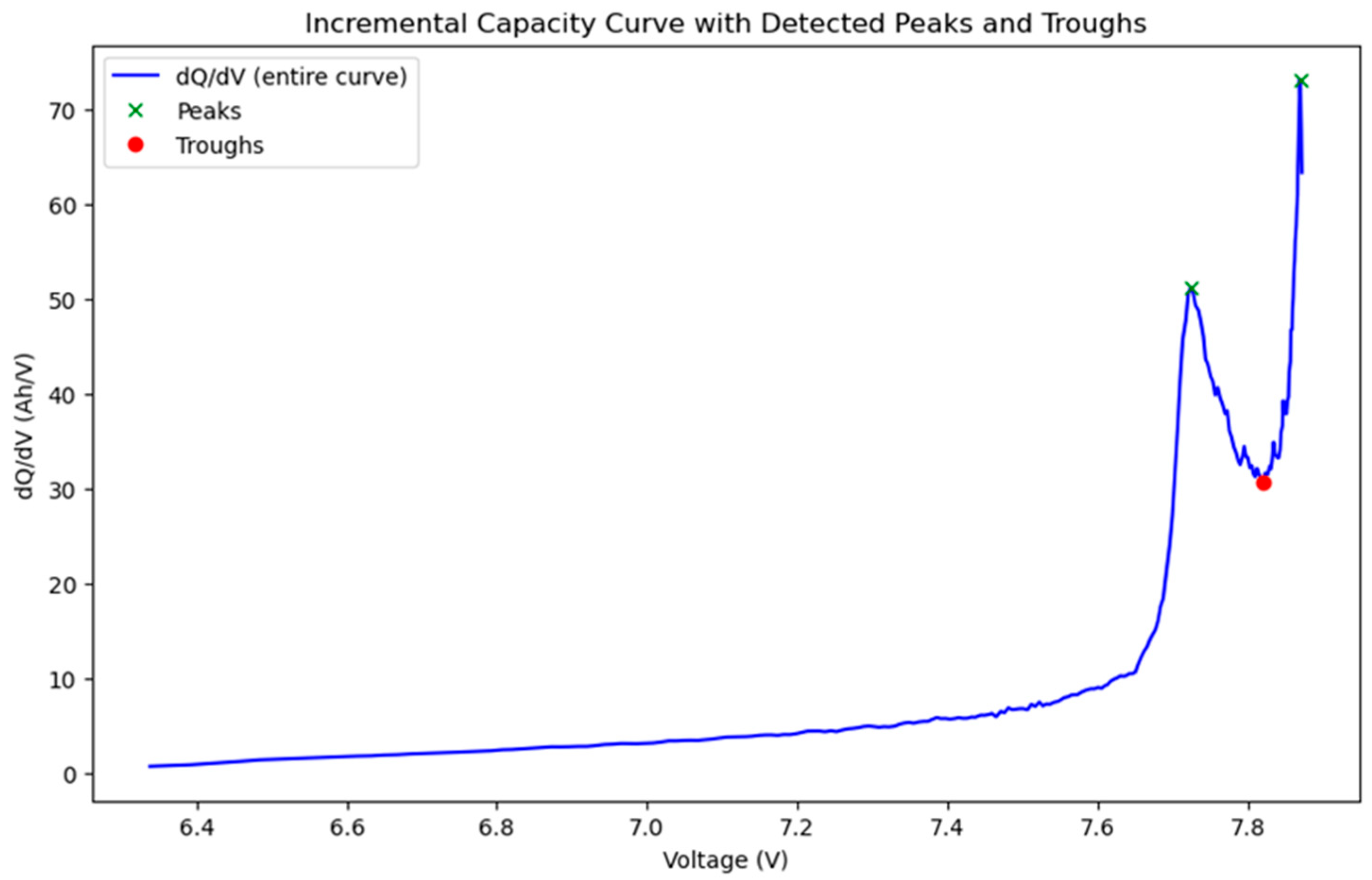 The IC curves were further filtered to isolate regions above the defined voltage threshold, after which peak and trough detection was performed using the find_peaks() function from the SciPy library [