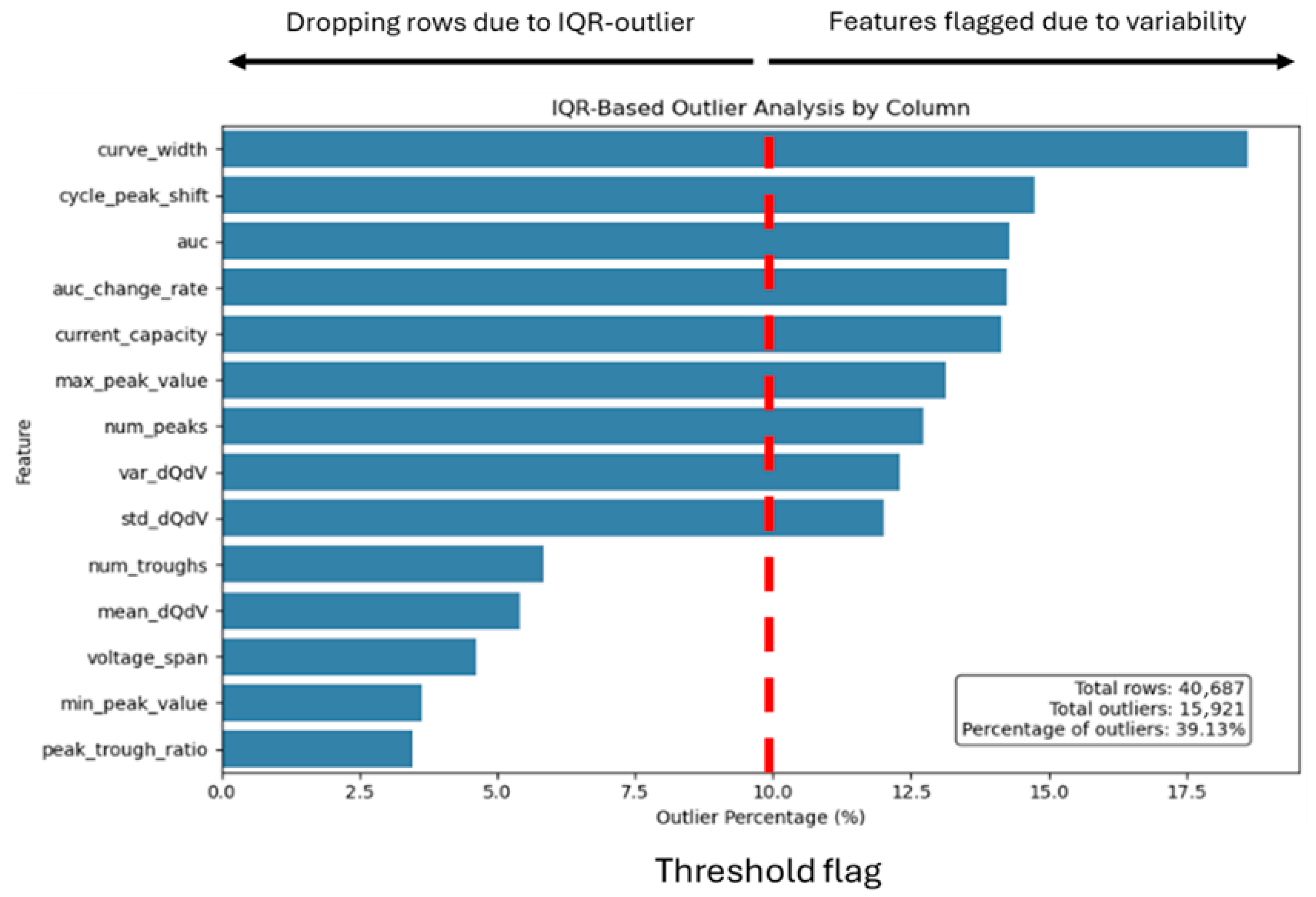 A structured data cleaning and preparation process was applied to the aggregated dataset prior to feature engineering and model development. This step addressed missing values, managed outliers, and ensured consistency across the combined FLB and SLB datasets. The initial dataset comprised 40,689 rows of data across 20 features, where each row corresponds to a single IC cycle.