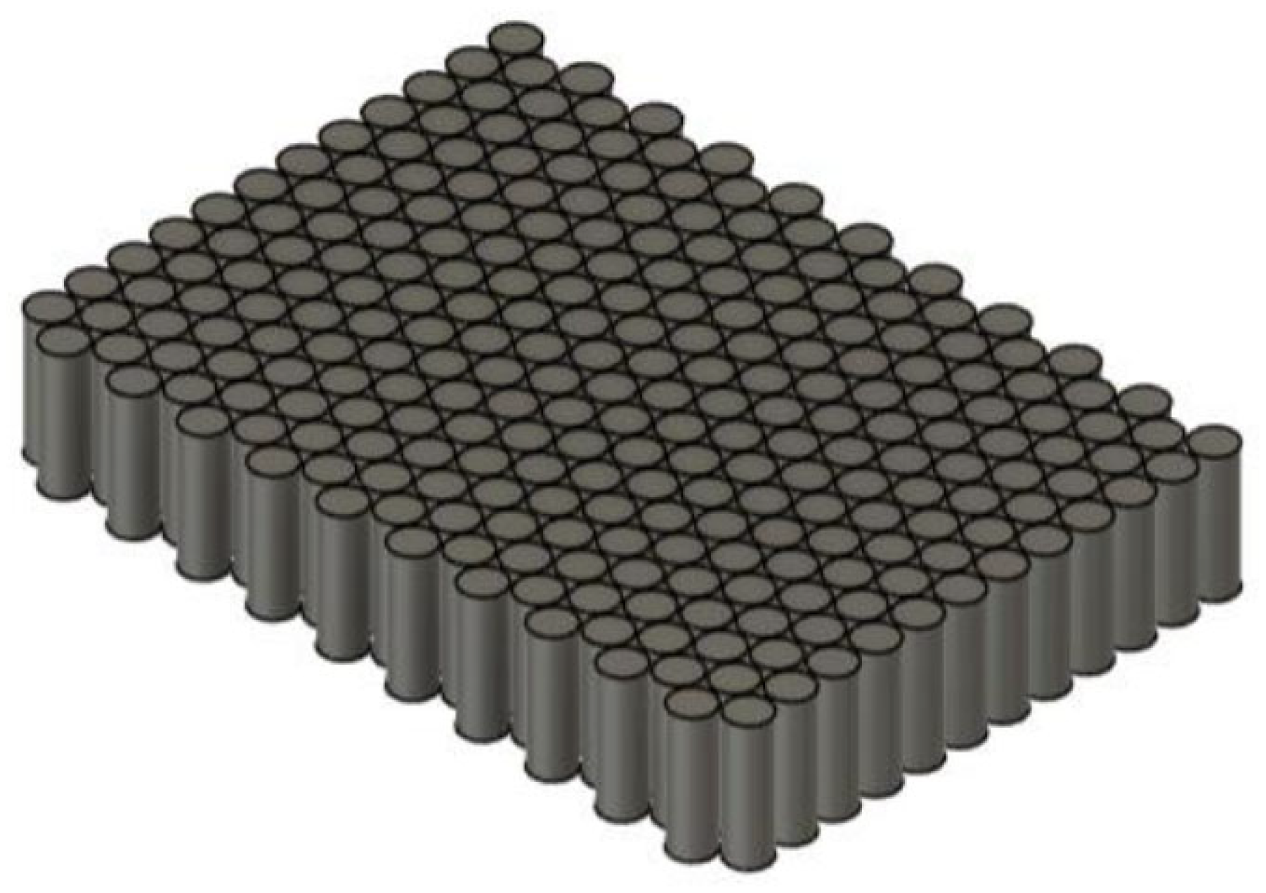 In systems of this type (Figure 5), the battery pack is immersed directly in a dielectric liquid with high thermal conductivity, ensuring significantly more efficient cooling than forced air systems. However, it is necessary to ensure that the system is watertight and that the battery pack is cooled evenly, i.e., avoiding the formation of hot spots, which involves considerable design complexity and therefore very high costs. Therefore, such systems are still not widely used and are mainly intended for high-performance cars [16,17,18,19].