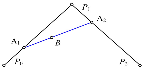Given three points P0, P1 and P2, the data points on the line passing through points P0 and P1 are A1, called intermediate linear interpolation points; these points on the line passing through points P1 and P2 are A2; and the interpolation point on the line passing through points A1 and A2 is B, as shown in the Figure 3 below.