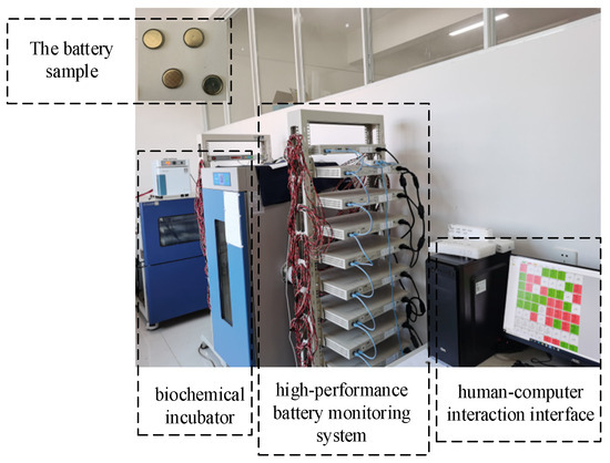 Experiments were further conducted on a Xinwei low-current cell test platform using lithium-ion coin cells. Cells were aged under constant-current cycling: charging at 0.4 mA to 4.3 V, followed by discharging at 0.4 mA to 2.7 V. After each discharge, the cell rested for 10 s. The sampling interval was 10 s (i.e., measurements were recorded every 10 s). The cycling thresholds are listed in Table 5, and the experimental setup is shown in Figure 8.