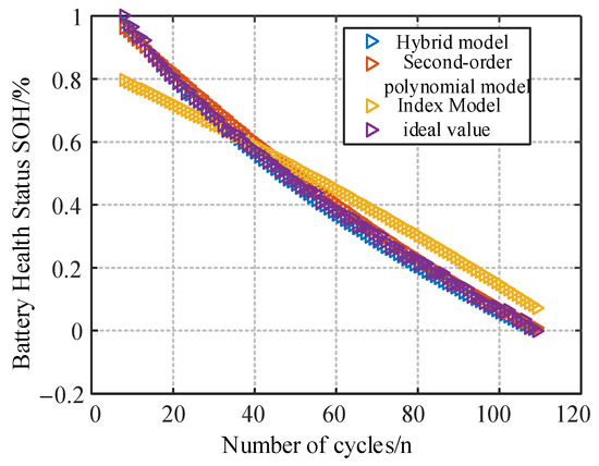 Using the aging data of cell B1, we also constructed alternative SOH estimation models and evaluated their generalization performance using the aging data of cell B2. The comparative results are shown in Figure 14.