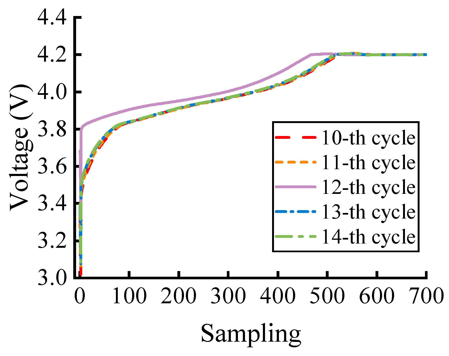 3]. However, with repeated charge–discharge cycles during operation, numerous electrochemical side reactions continuously occur in the anode, electrolyte, and cathode, leading to progressive performance degradation of the battery. Consequently, the remaining useful life (RUL) of the battery degrades [
