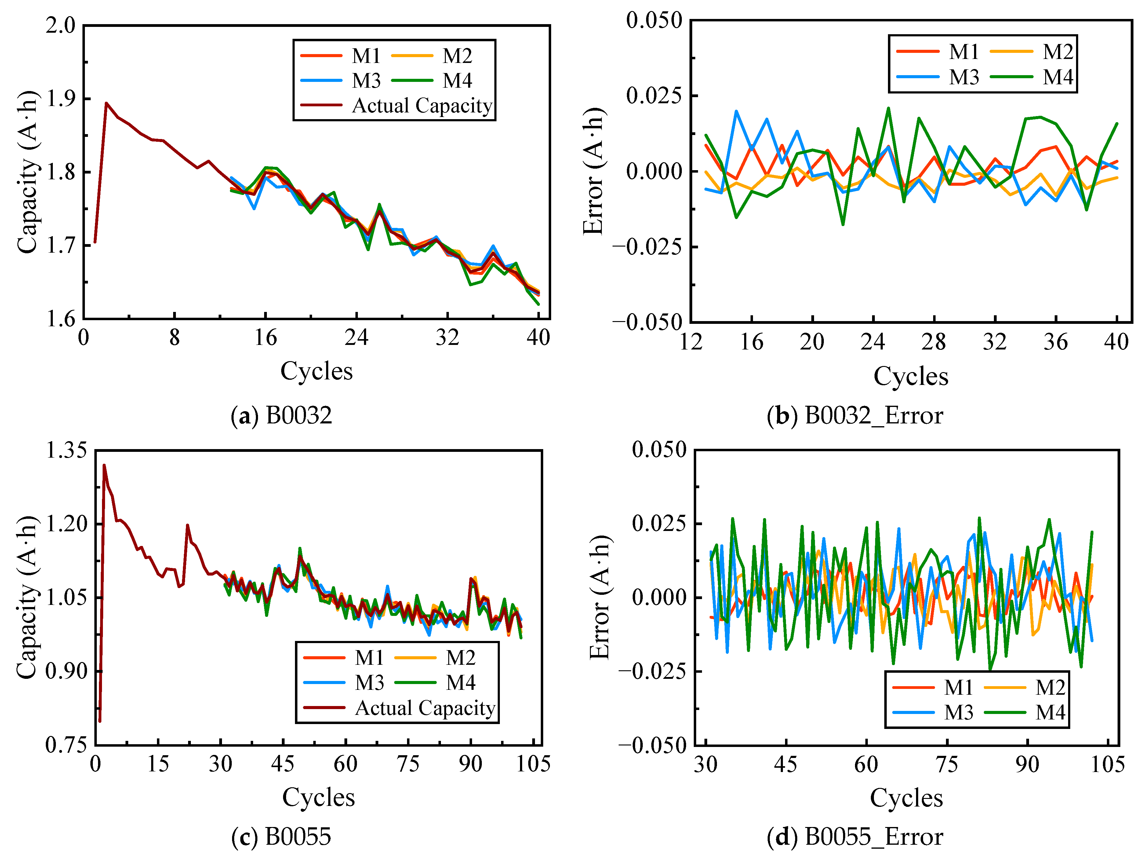 11]. Electrochemical models are established on the basis of reaction mechanisms during electrochemical processes; however, due to the excessive complexity of internal battery reactions, it is difficult to construct accurate degradation models [