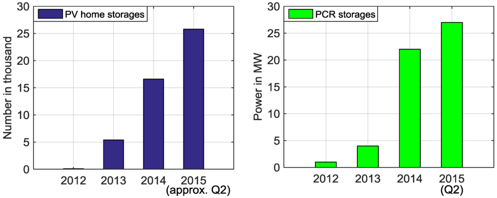 Growth of photovoltaic (PV) and primary control reserve (PCR) storage system markets in Germany [6].