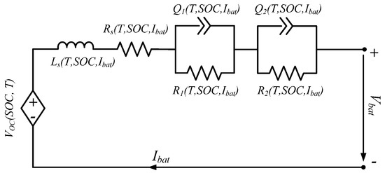 where Vbat represents the voltage of the battery, VOC represents the OCV, and VEEC represents the voltage drop across the EEC, which is used to model the dynamics of the battery.