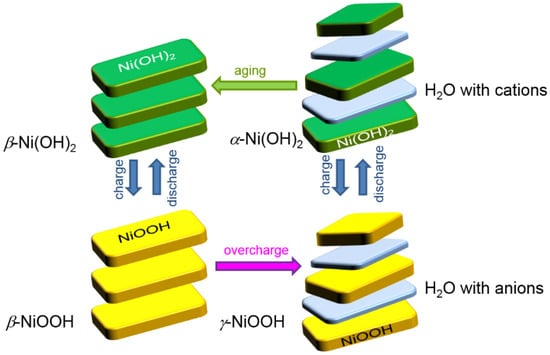 - Dixit, M.; Jayashree, R.S.; Kamath, P.V.; Shukla, A.K.; Kumar, V.G.; Munichandraiah, N. Electrochemically impregnated aluminum-stabilized α-nickel hydroxide electrode. Electrochem. Solid State Lett. 1999, 2, 170–171. [Google Scholar] [CrossRef]