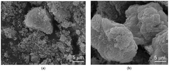 Scanning electron microscope (SEM) micrographs of α-Ni(OH)2 prepared by the Ni-2 batch process (a) before and (b) after the flooded half-cell electrochemical capacity measurements.