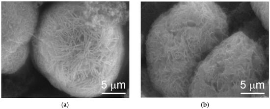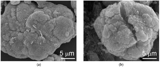 SEM analysis results show that cracking in the cycled WM02 spherical particles is due to swelling caused by the β-to-α transition (Figure 9b) and that WM12 maintained the same shape after 20 cycles (Figure 10). In addition, the surface morphologies of the two materials are different. While WM02 spherical particles have a more compact surface with a granular texture, WM12 spherical particles have a less dense surface with crystallite plates aligning perpendicular to the surface. The surface area and pore density of WM02 are smaller than those of WM12 with the same average pore diameter (Table 3).