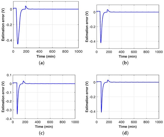 In this section, , , and adaptive observer algorithms are designed to estimate the online battery’s . Rearranging Equation (2) leads to:
