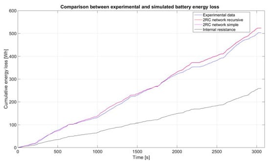 Cumulative energy loss comparison between the experimental data and simulated battery model.