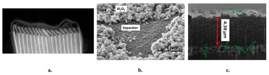Such interactions can be characterised by calculation of the Flory–Huggins interaction parameters when the polymer identity and electrolyte solvent composition is known. Commonly used separators are based on multiple layers to provide mechanical resilience and a thermal shutdown mechanism for additional safety. The polymer portion of the Samsung separator is a ceramic coated monolayer and was less than 5 µm in thickness with a double-sided covering of Al2O3 of around 1 µm thickness. Other commercially available separators such as Celgard 2325 trilayer polyolefin separators (polypropylene—polyethylene-polypropylene), are over four times the thickness of this at 25 µm, and quote product thickness ranges of 12–40 µm [26]. Multi-layer polyolefins can be manufactured with a shutdown function and used as a fail-safe component in batteries. However, reports of extremely low wettability with liquid electrolytes have limited its further application in energy storage systems for electric vehicles [27,28]. Ceramic coatings have successfully demonstrated resistance to thermal shrinkage in batteries in operating temperature ranges of 110–200 °C for 30 min [29].
