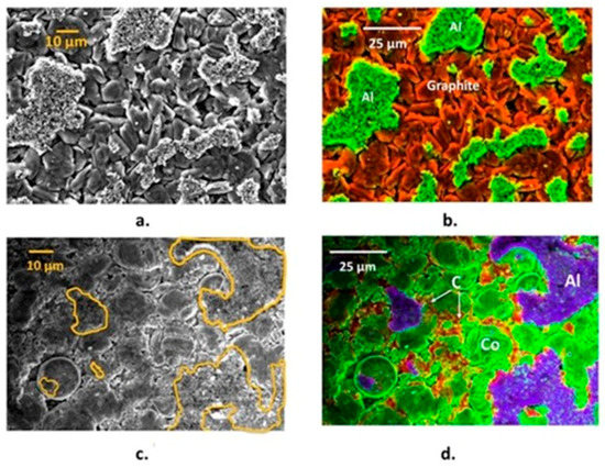 Conversely, on the cathode electrode there were frequent deposits of a ceramic layer—this is investigated further. There have been no mentions of electrode manufacturing quality concerns or separator coating issues in the previous reports. SEM imaging was carried out on electrodes and pieces of separator material and is depicted in Figure 4, which shows surface analysis and cross-sectional characterisation. The anode was mainly composed of graphite and the cathode was based on lithium cobalt oxide (LiCoO2).