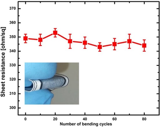Sheet resistance of the anodic chamber vs. the number of bending cycles.