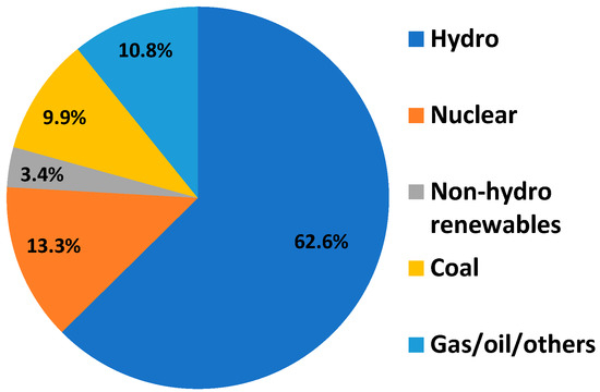 The largest suppliers for electricity generation are provided by hydroelectricity and nuclear [